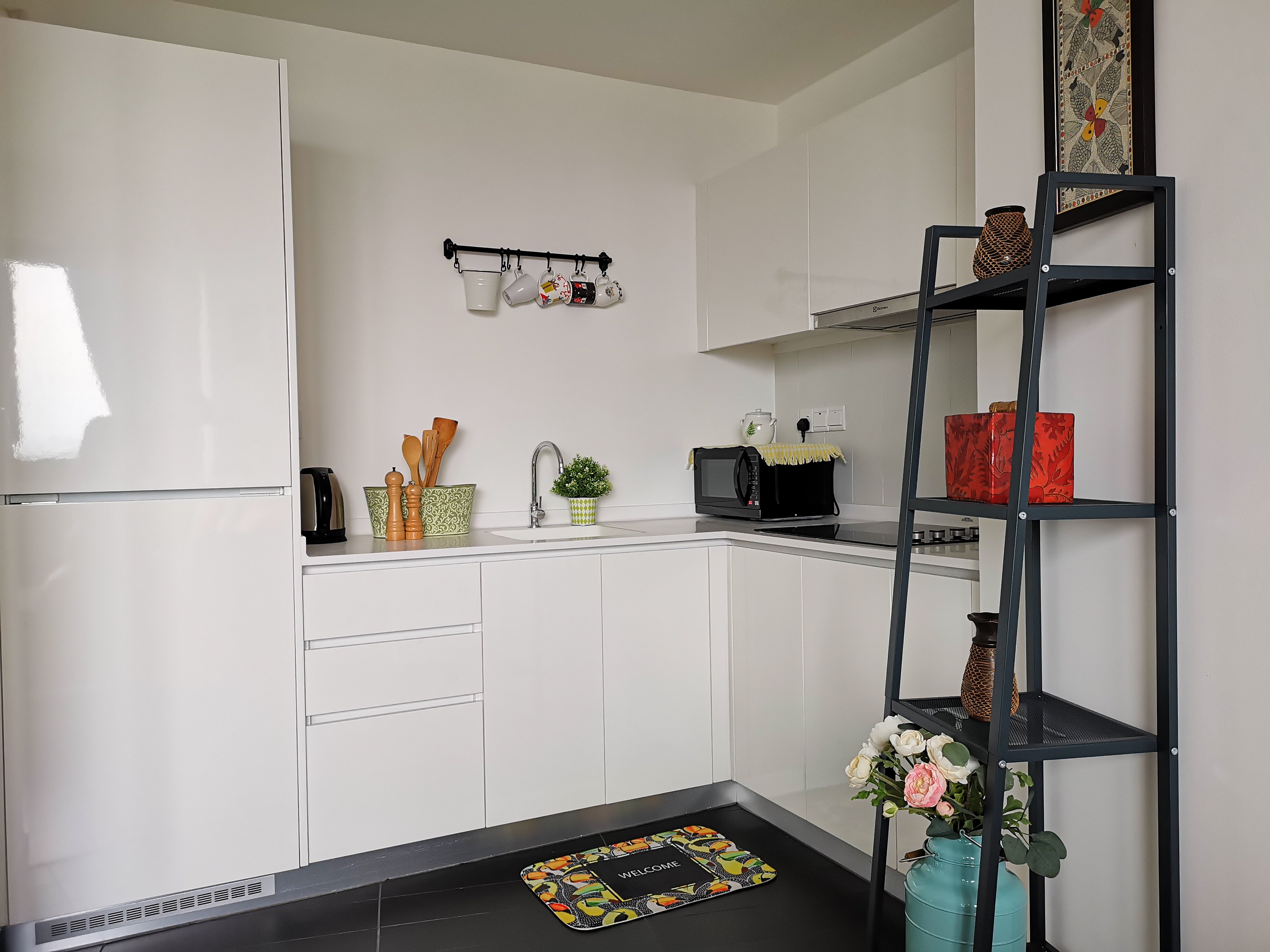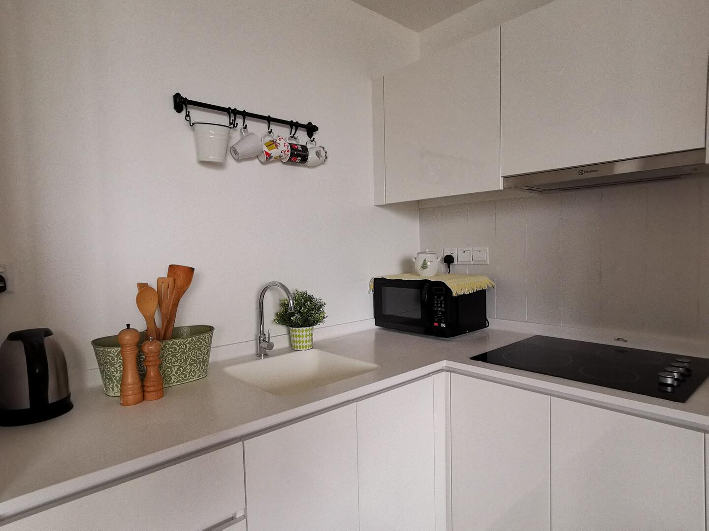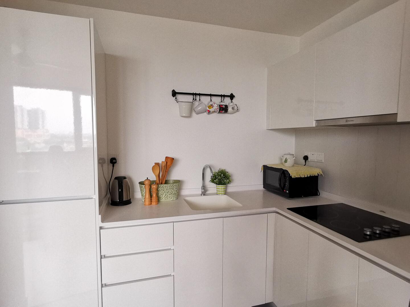 -Full utensils, microwave oven, kettle & fridge/freezer.