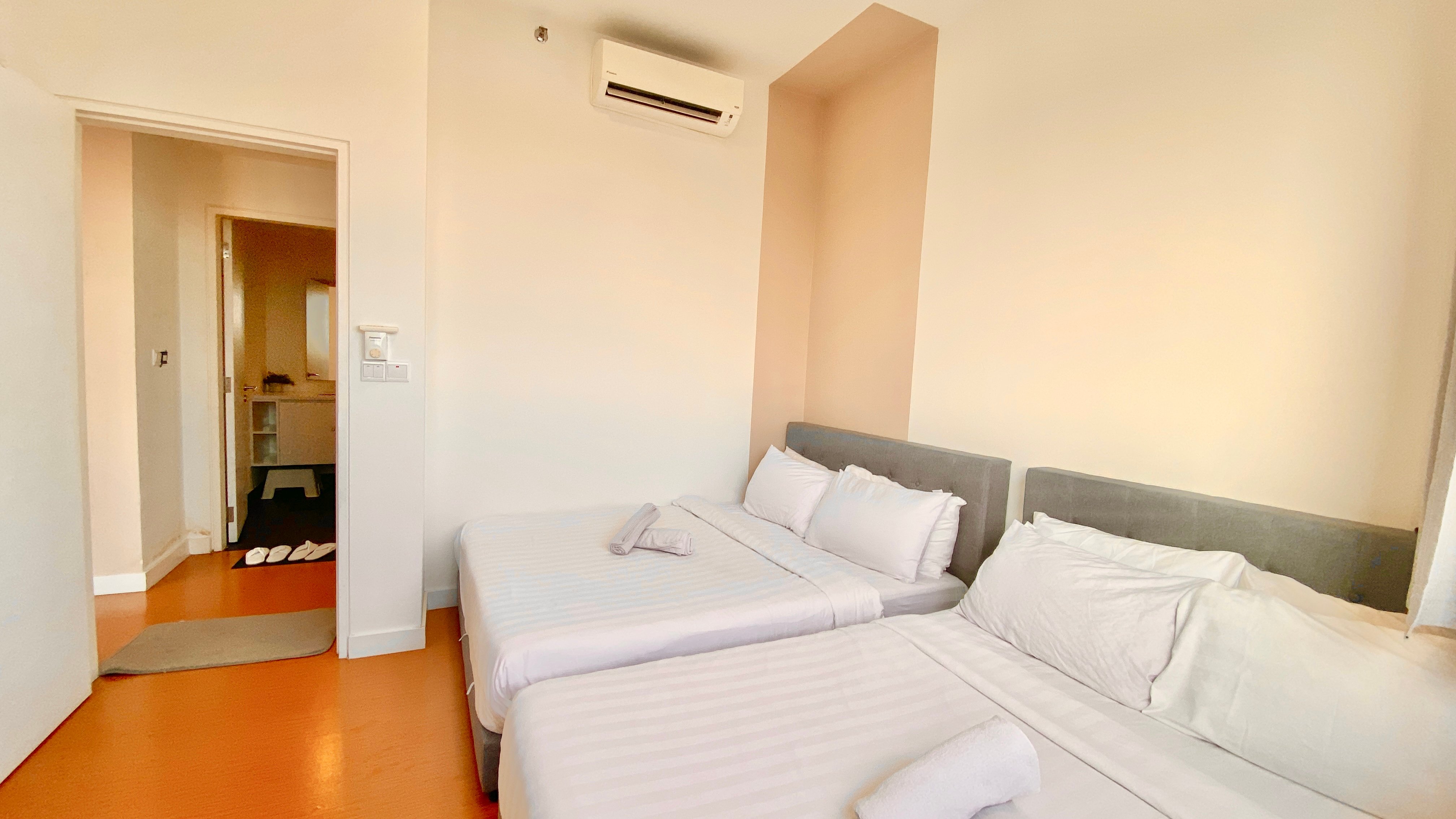 This place we found on airbnb was very spacious both rooms, the living area was very ambient with lighting and could accommodate around 6-7 ppl and the view at night is one of the reasons to get this place for 😍 .