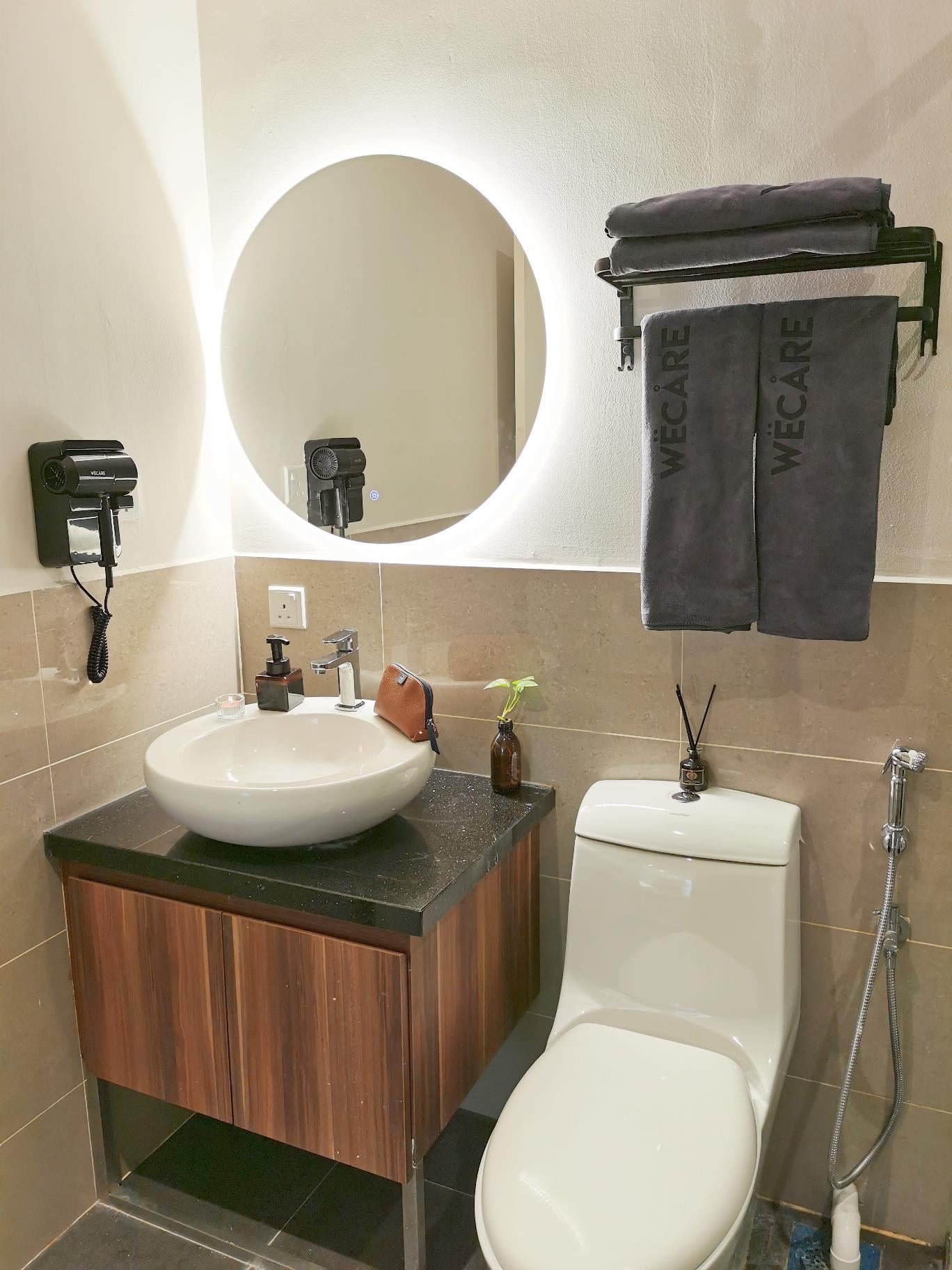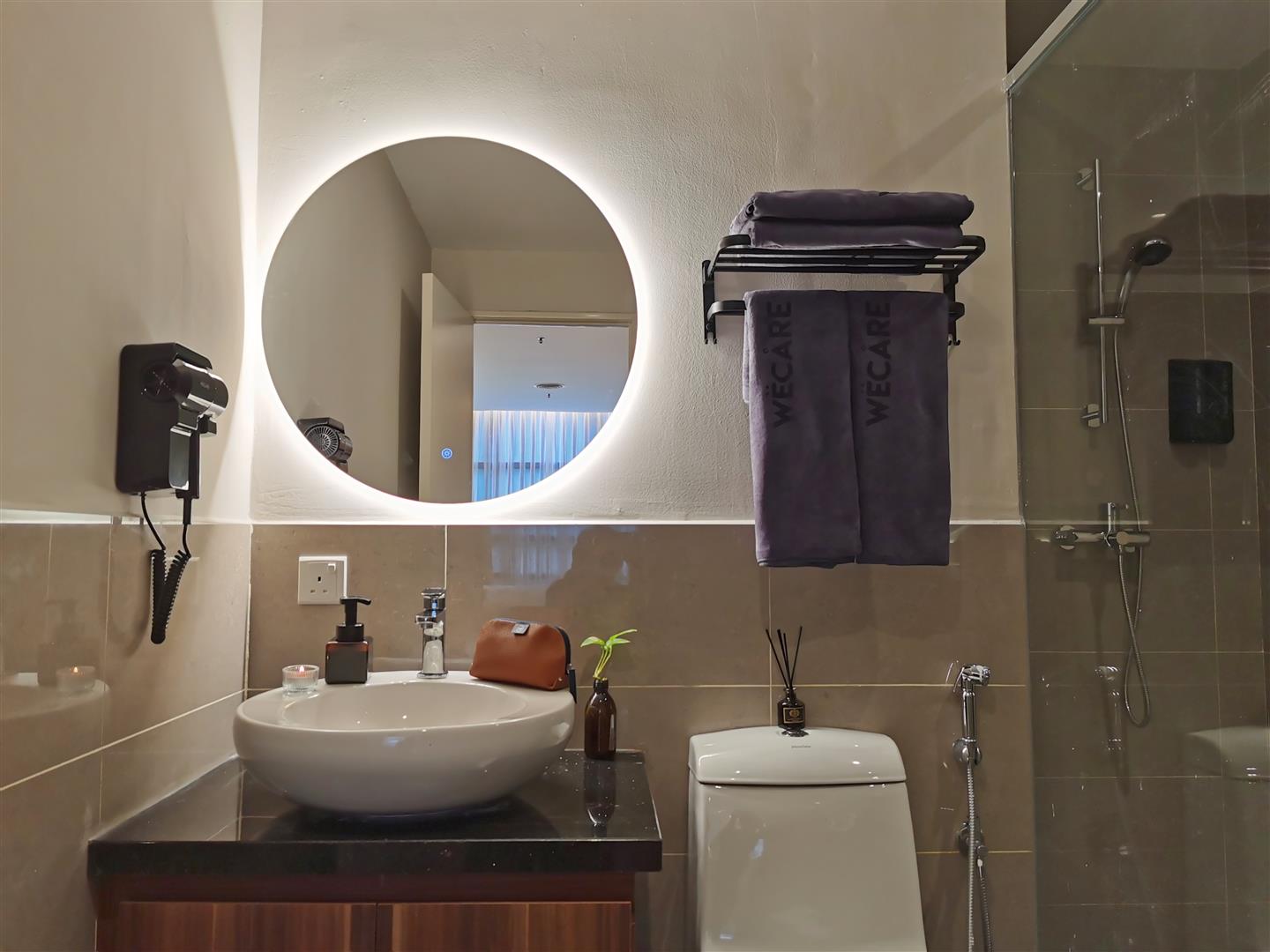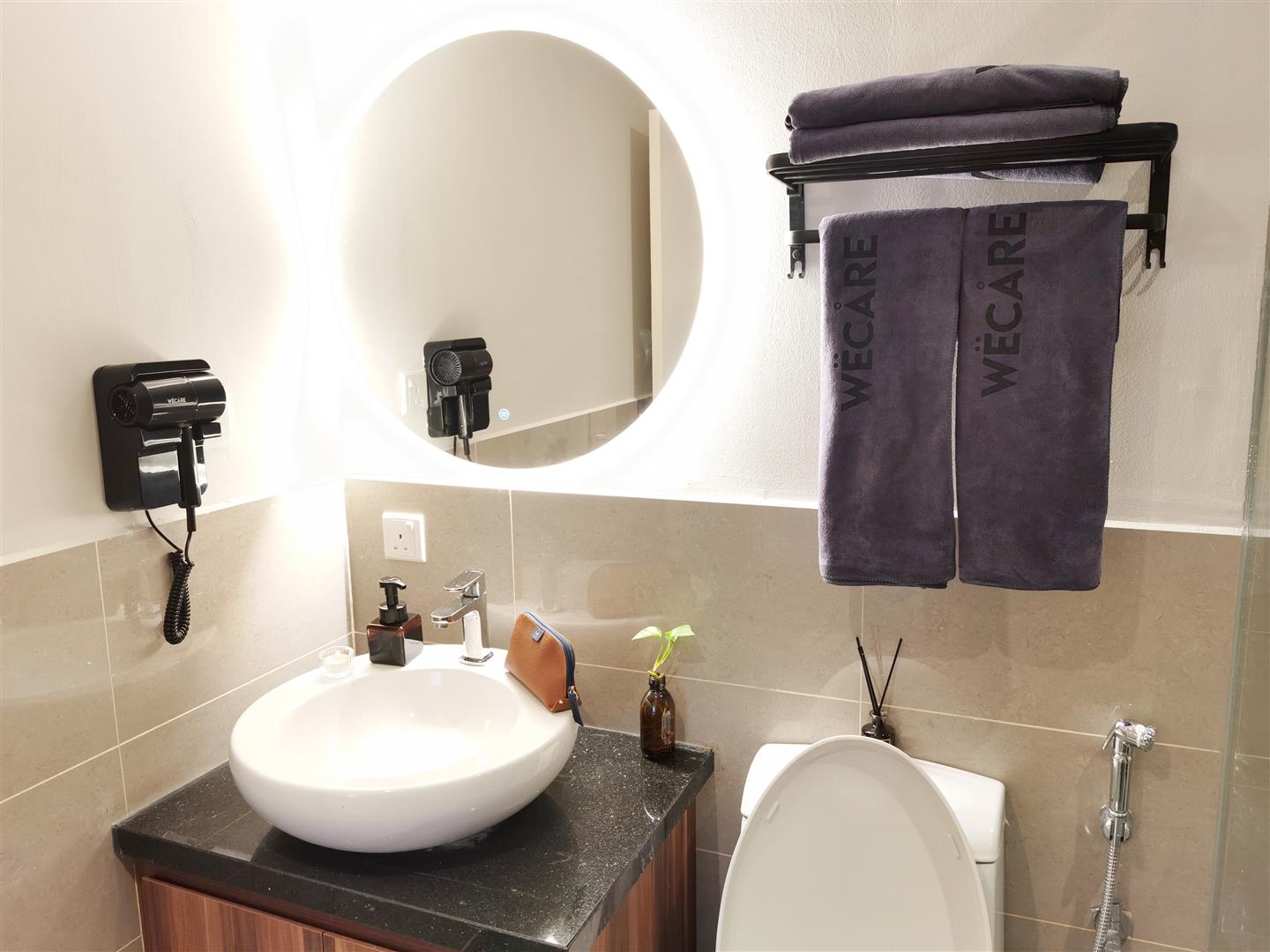 -Equipped with wall mounted branded hair dryer