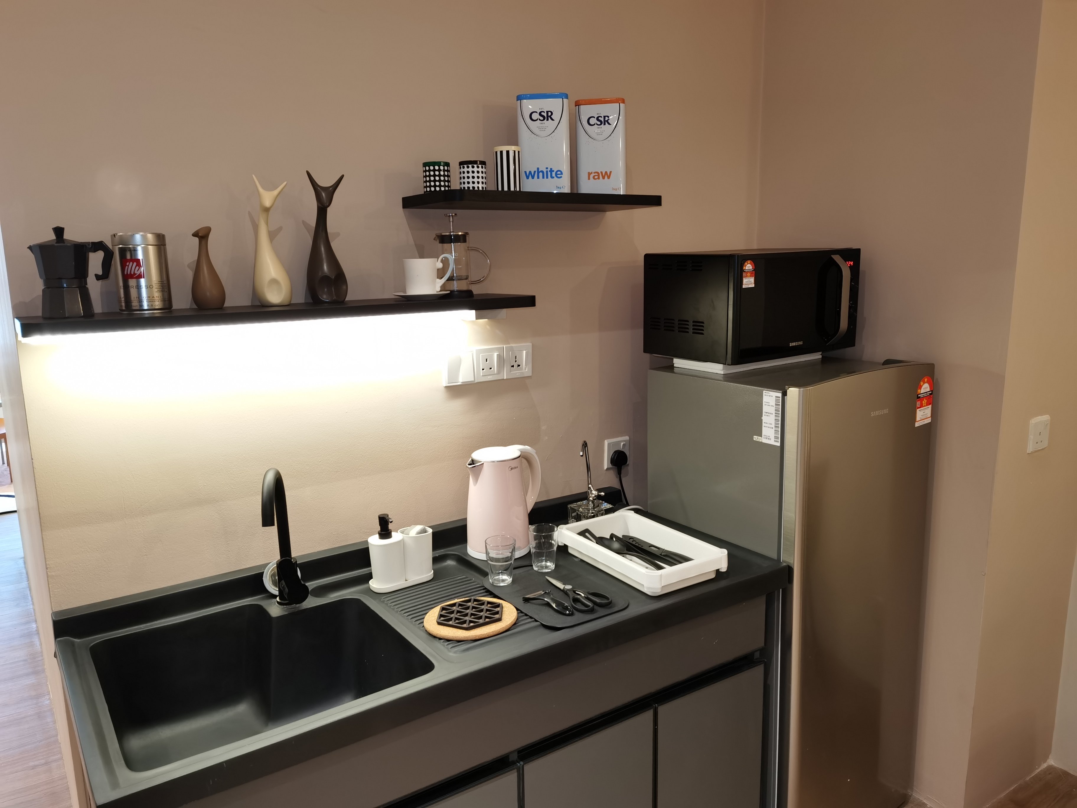 Our spacious studio suite provides a perfect choice for a couples, business travelers, expatriates, and families too! Welcome to contact us if there's anything we can help you with! Remember to favorite us in your list for easy reference.