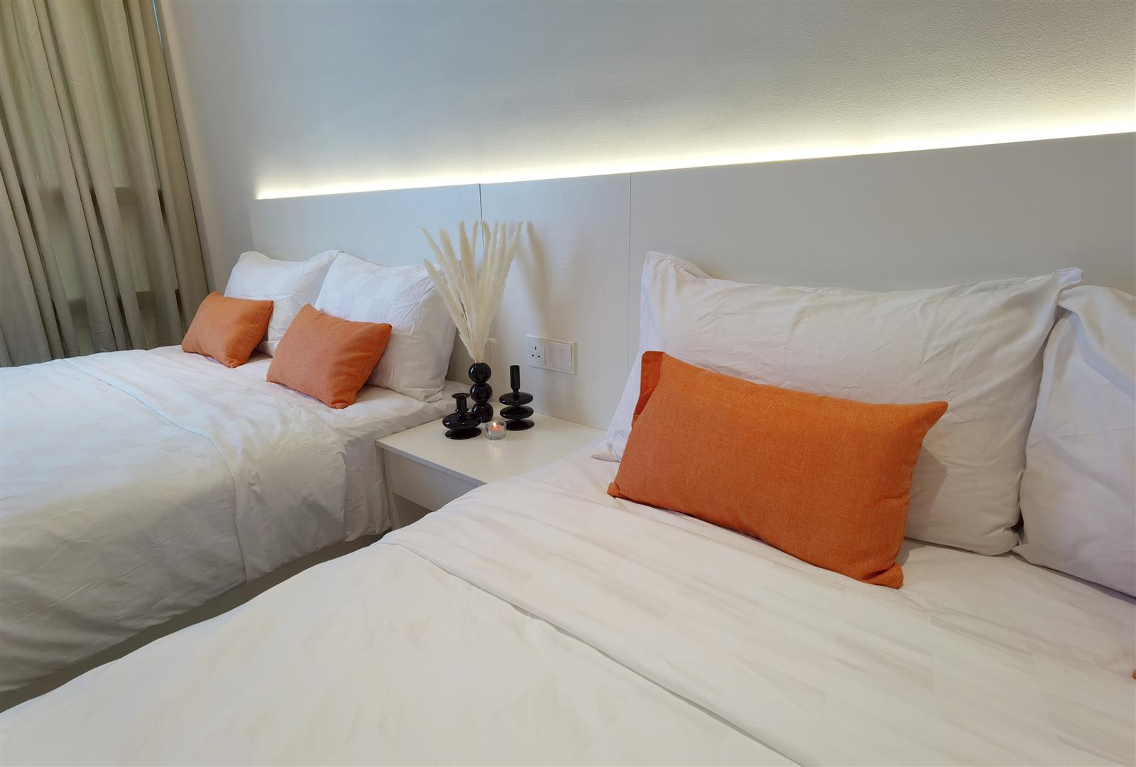 -Bed setup: 2 pax of guests for one queen-size bed