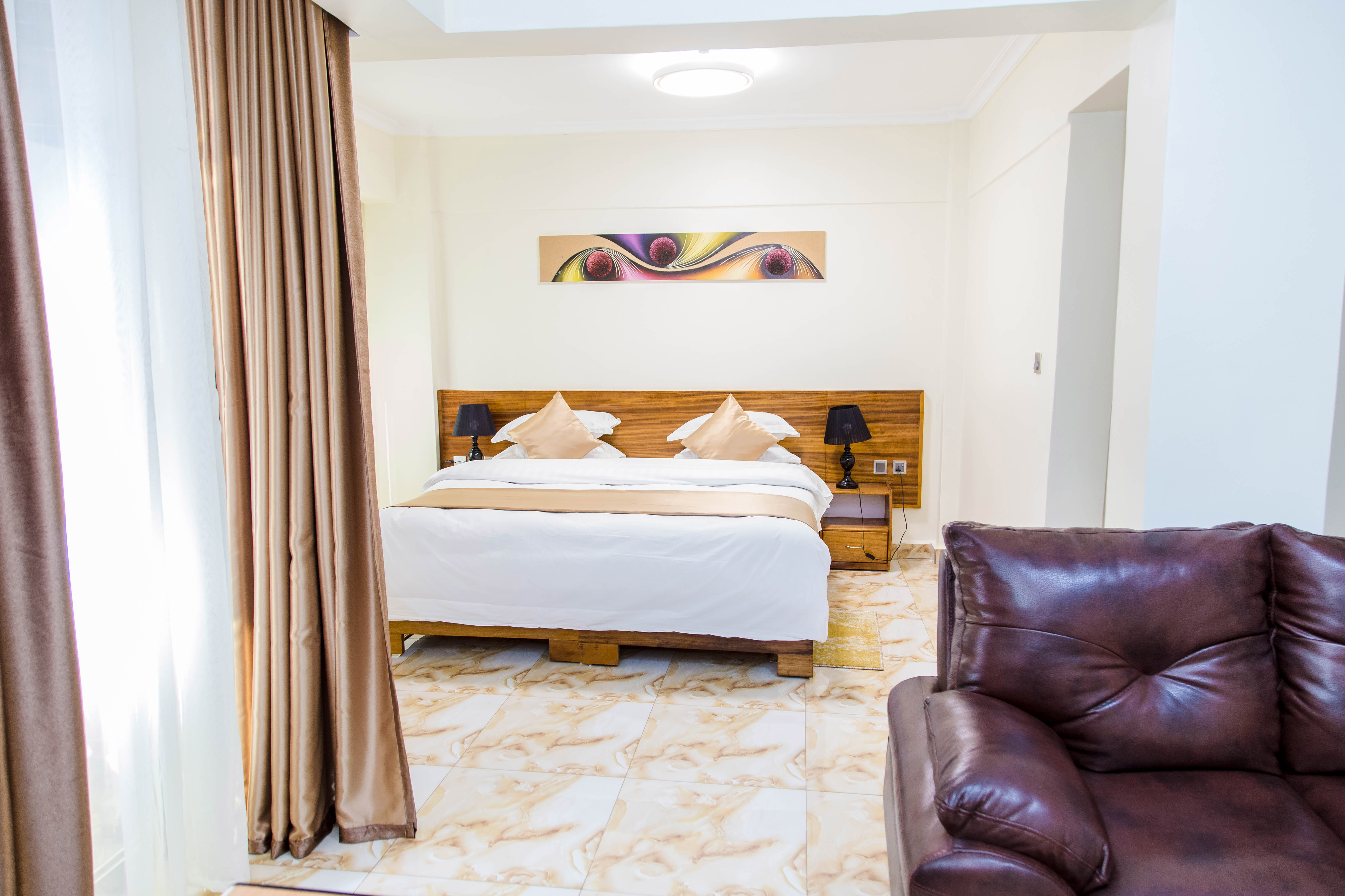 Mountain View Apartments is located in Gisozi, Kigali , RWANDA. We propose you to live in a magnificent complex composed of 7 different apartments, from 3 to 1 bedrooms and hotel with 44 luxury rooms . Each apartments are fully equipped, with high standard furnitures, complete kitchen & African Art Decoration. You will love your stay with us !