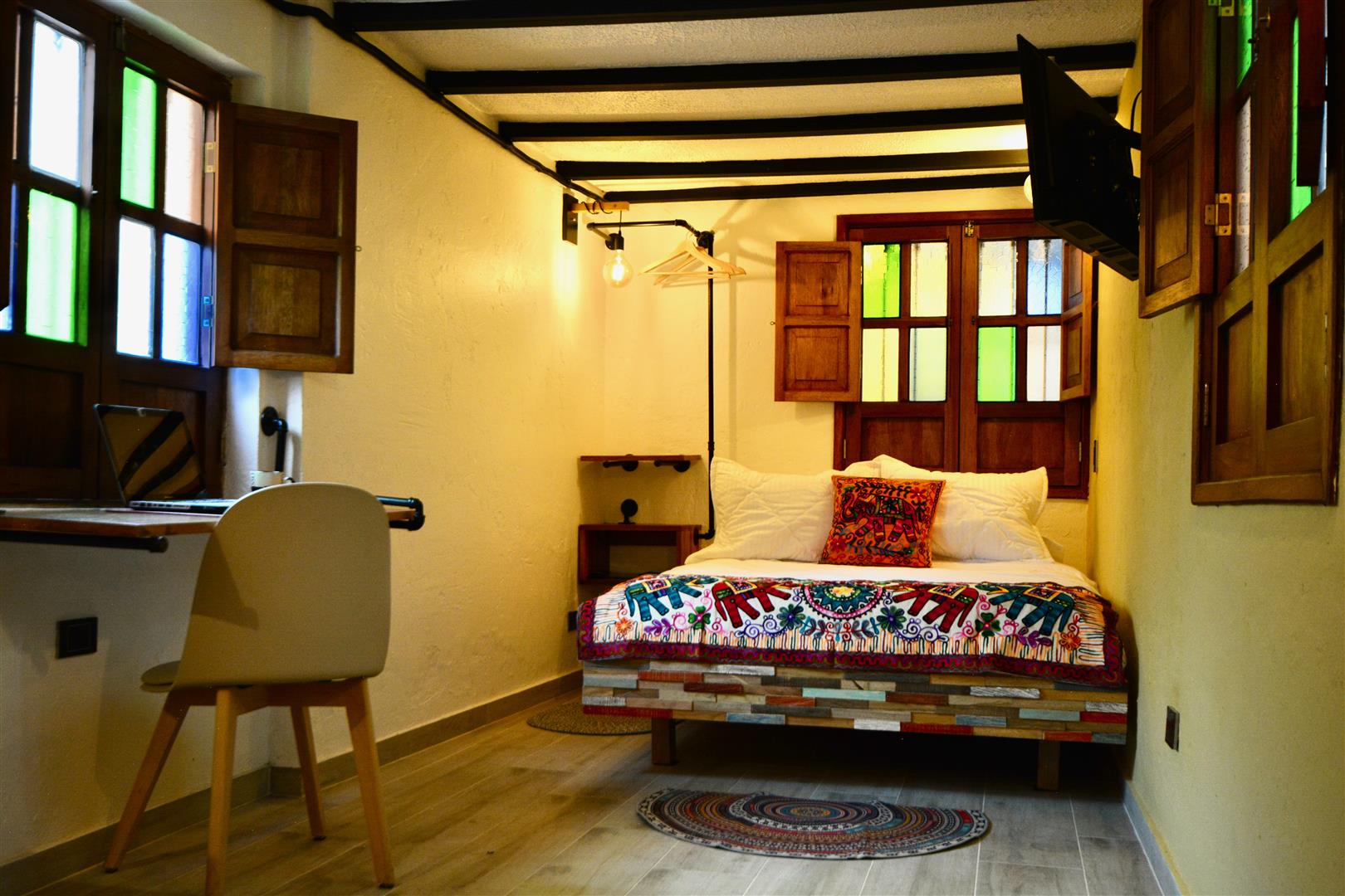 It's in the traditional and historic La Candelaria neighborhood, completely renovated in 2023 and opened in 2024, with eight impressive studio/loft apartments, with kitchen, private bathroom and three common areas. Every corner reflects taste, style, vivid colors, and a very cozy atmosphere, designed for the comfort of the traveler and tourist who wants to get to know Bogotá.