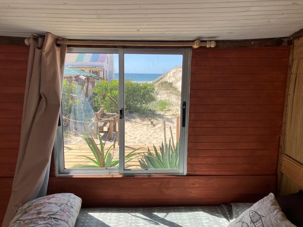 Un espacio acogedor y luminoso, ubicado al frente de la construcción, con una hermosa vista al mar desde la habitacióny un deck privado para disfrutar del entorno natural de Valizas.